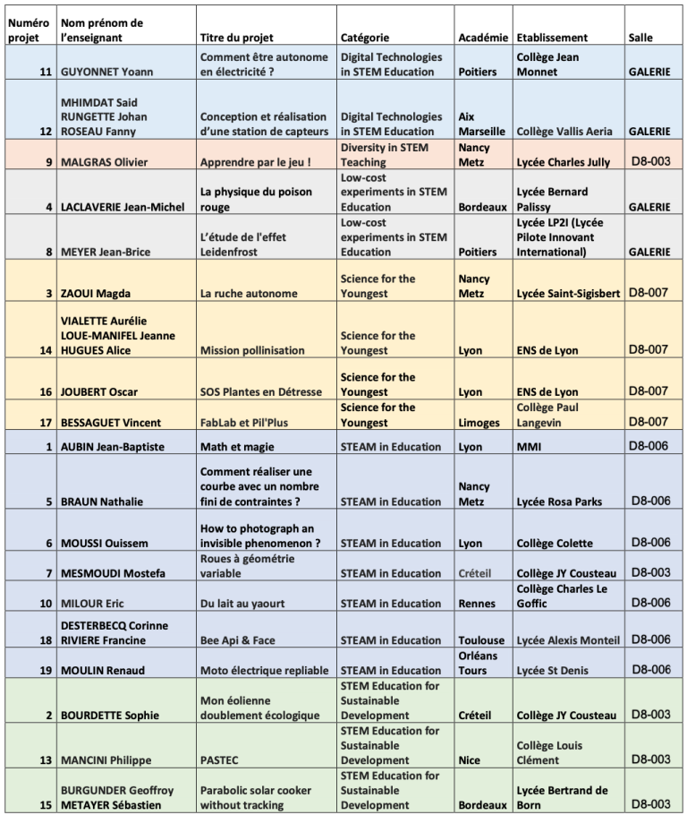 - Joint Projets : élaborés en collaboration par des enseignants qui se sont rencontrés lors d’un des événements passés de Science on Stage, par exemple festival, webinaire, développement professionnel, réunion de réseau, projet.