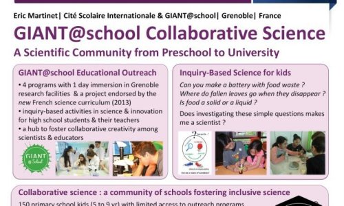 Mené par Eric Martinet professeur de physique-chimie à Grenoble Cité Internationale, le projet transversal de collaboration du primaire à l’université a reçu le prix spécial de l’université de Debrecen (Hongrie) au festival Science on Stage 2017.