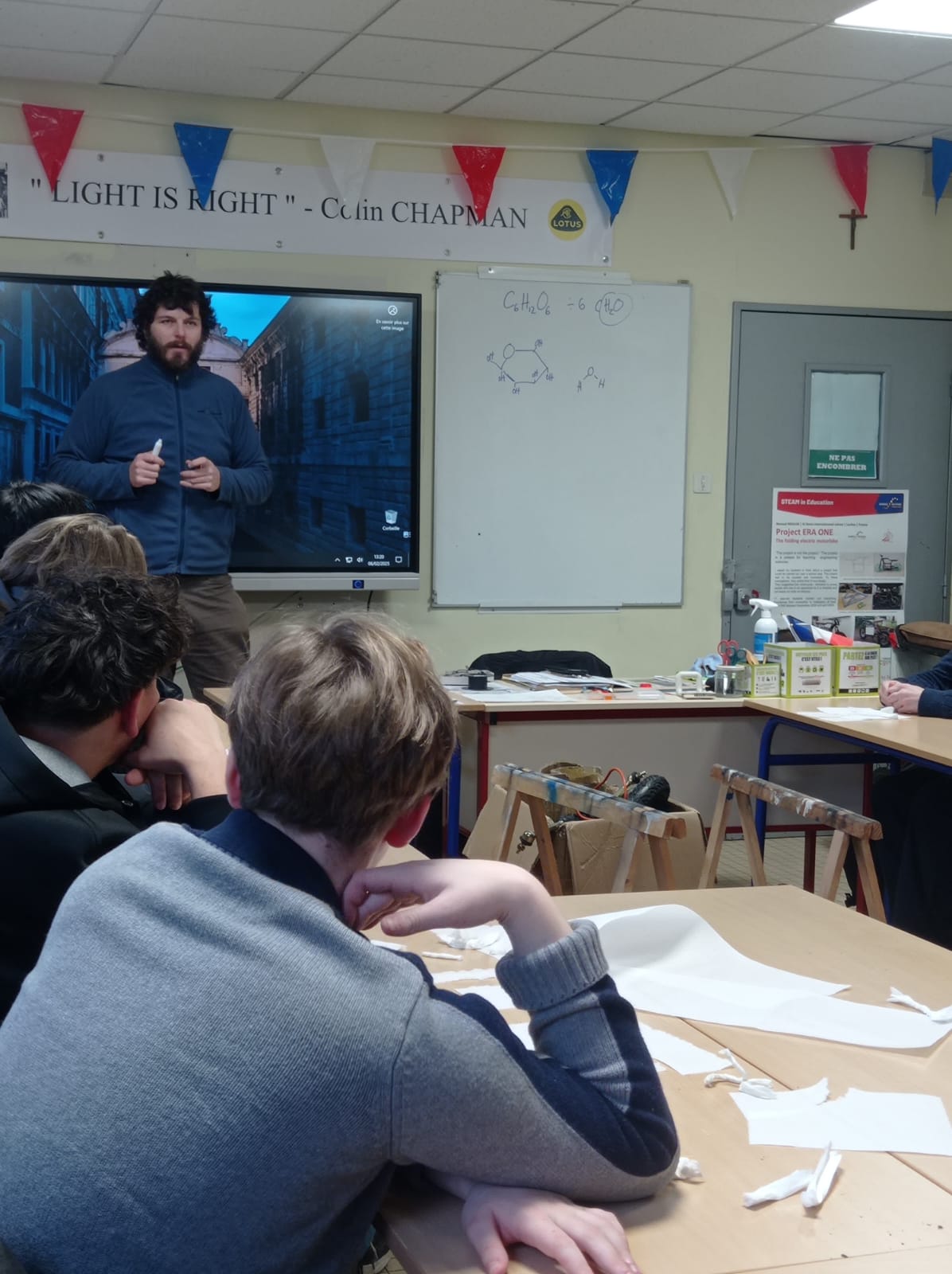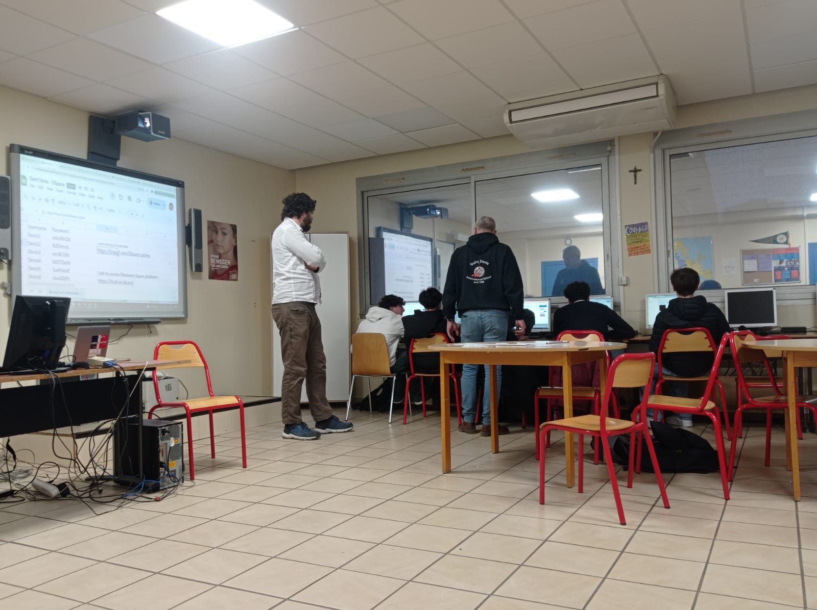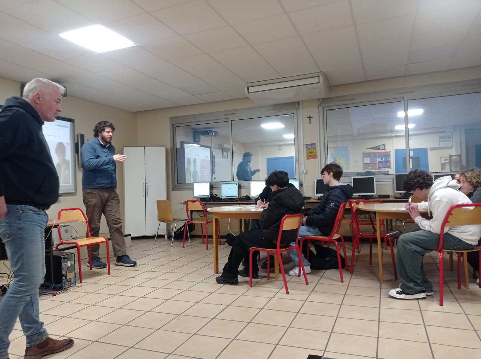 En prélude à la journée pédagogique, Michaël Gregory, responsable pédagogique du programme Discovery-space de l’European Physics Society (https://discoveryspace.eu) et président de Sciences on Stage France est intervenu dans les classes de 2nde (SNT) et 1ère (SI) de M. Moulin.